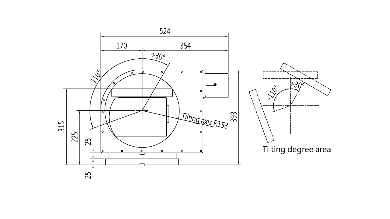 | Axis | degree | Rotating axis (C-axis), 360° | Tilt axis (A-axis), -30° to +120° | ||