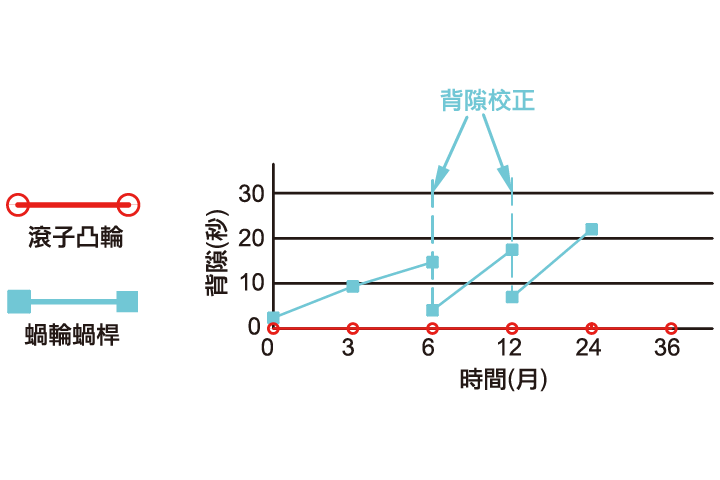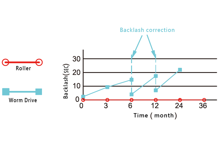 | ゼロバックラッシュ | ローラーカムとの転動接触により、正逆バックラッシュ問題がありません。ローラーカムの超精密特性が大幅に向上し、欠陥率が低下します。精度加工技術の飛躍的な進歩である品質が向上します。 | 摩擦押し出し伝導、ウォームギヤが摩耗しやすく短寿命です。 |