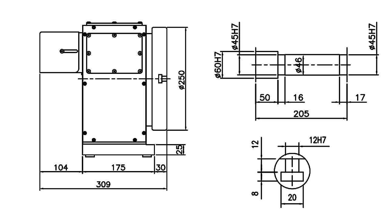 | 中心孔徑 | 前端孔徑 | mm | 60H7 | ||