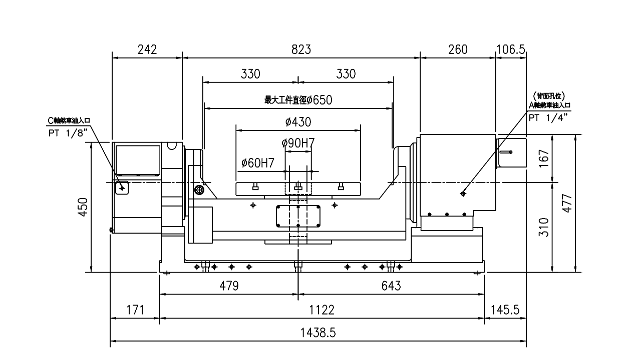 | 迴轉角度 | degree | 迴轉軸 (C軸), 360° | 傾斜軸 (A軸), -30° to +120° | ||