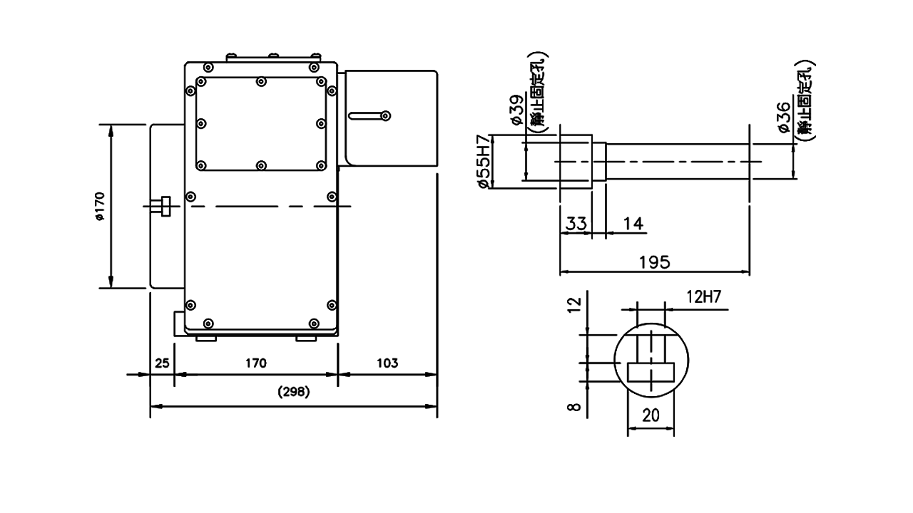 | 贯穿孔 | mm | 36H7 (静止固定孔) | |||
